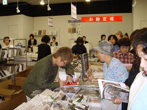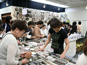 熱心に生地を探されるお客様たち。スタッフも、いろいろな相談・質問を受けました